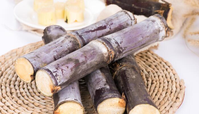 2、看颜色。紫皮甘蔗颜色越深越甜。